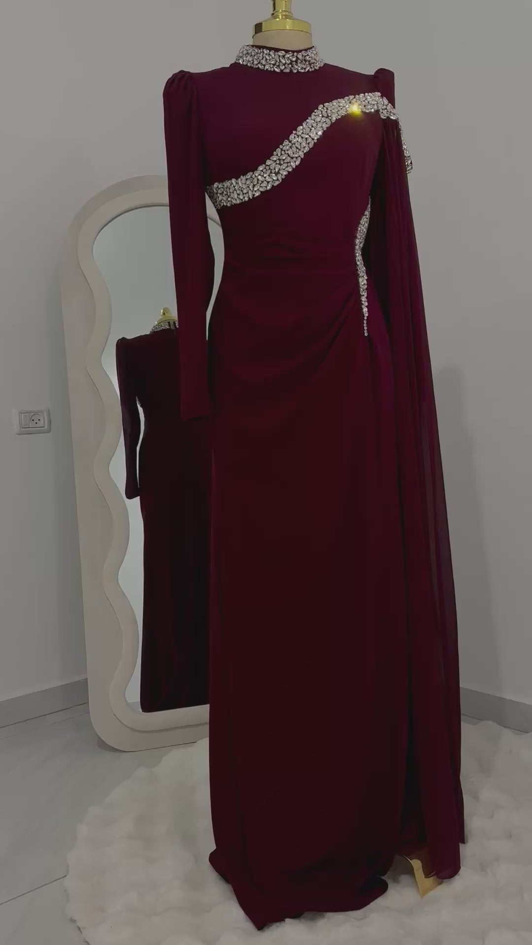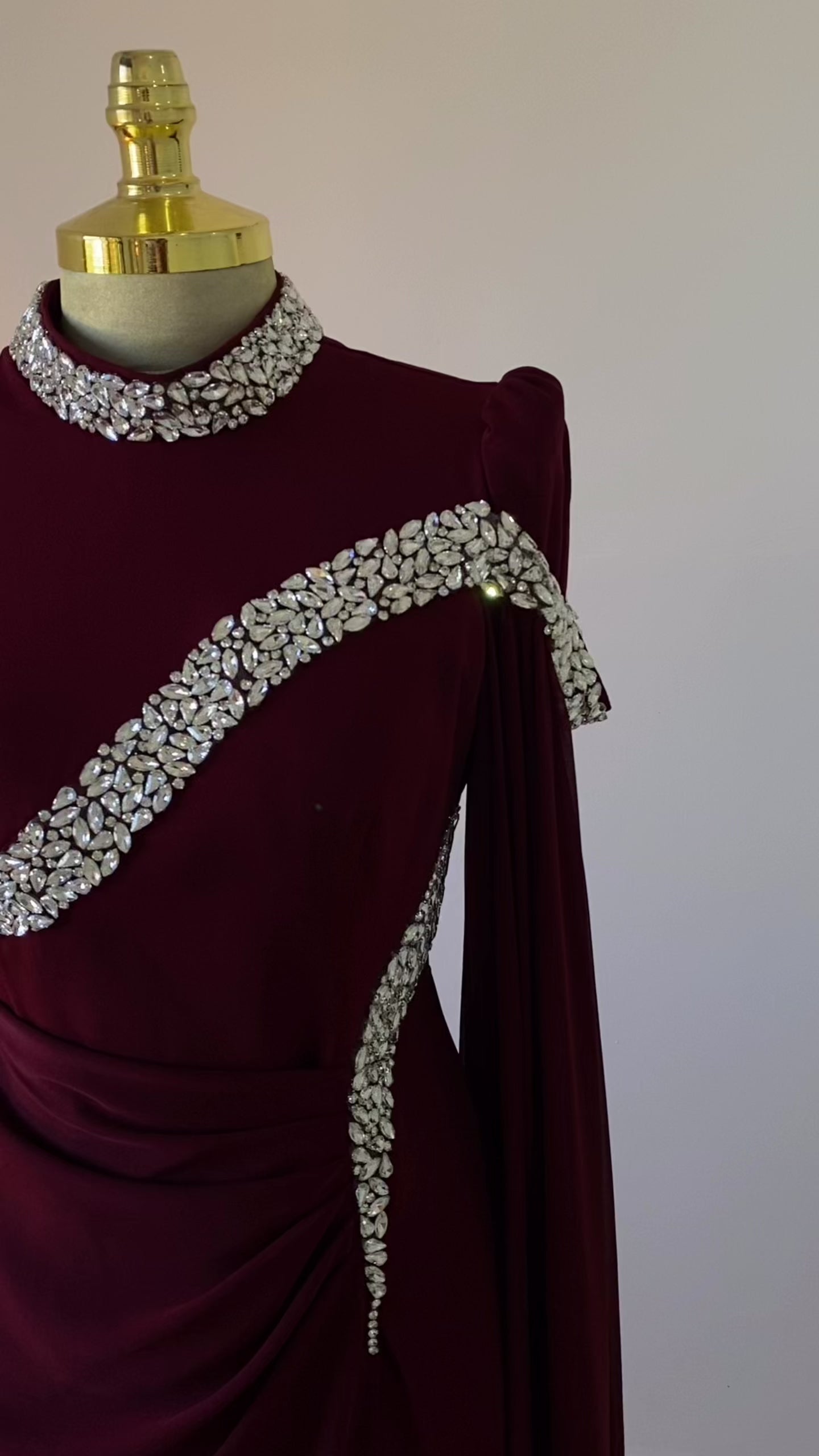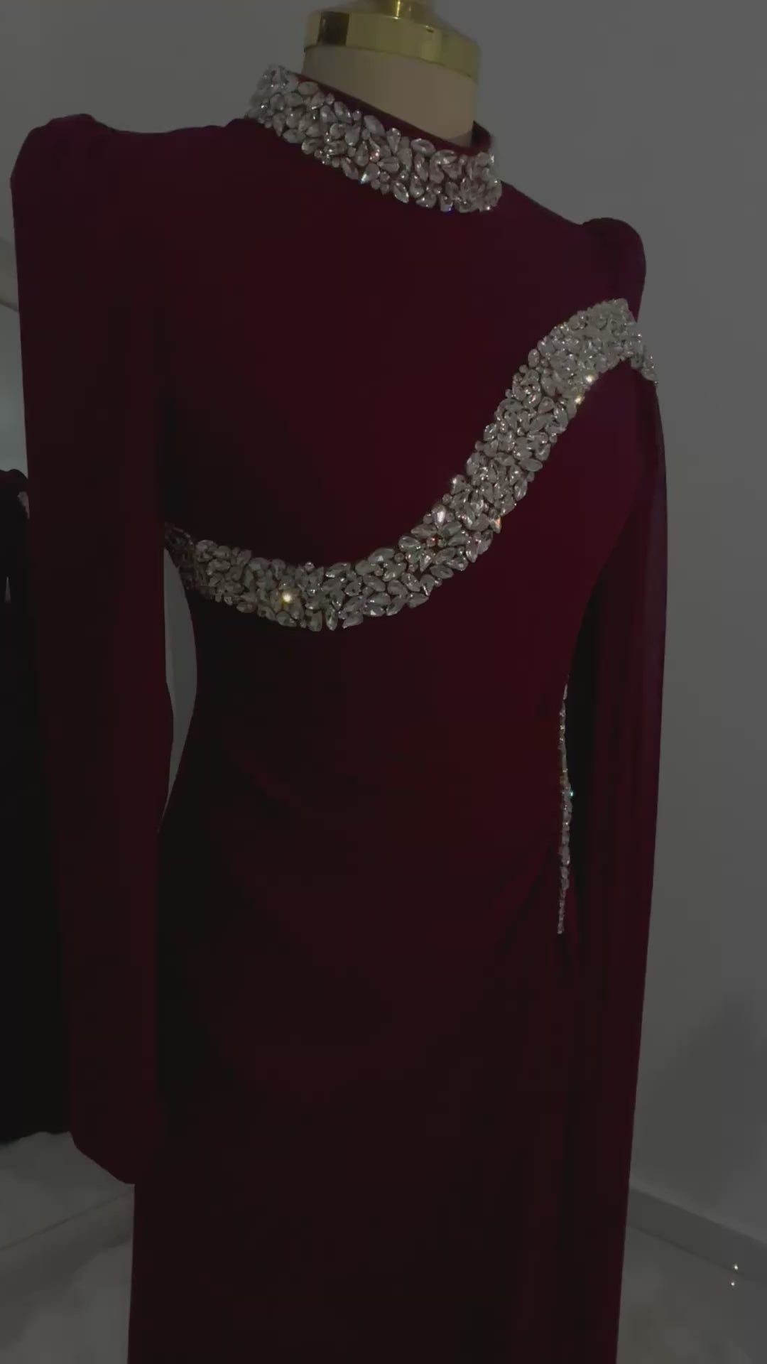 فستان سهرة لون بوردو "كريستال"